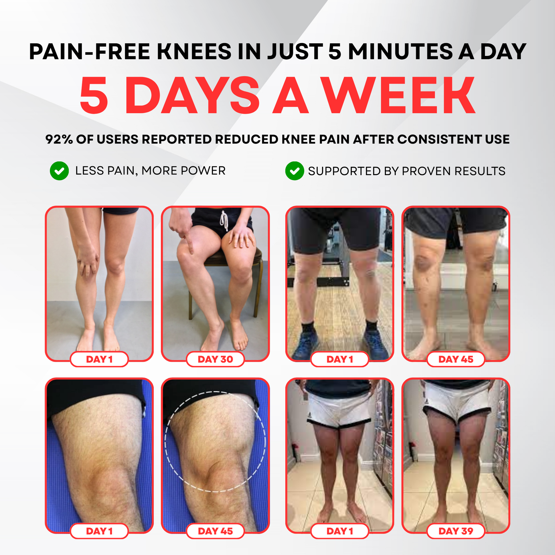 "Honestly, I didn’t expect much, but these straps actually work! They’re comfortable, easy to adjust, and the padded area gives my knee extra support. I’ve had surgery on one knee before, and since wearing these, it feels way more stable with less locking. Plus, the straps fit perfectly and stay in place. I’m really impressed with how much relief they’ve given me."